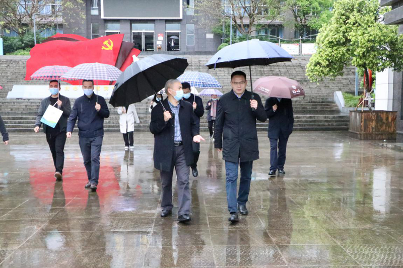 2022年3月31日,重庆市涪陵区副区长冯星贵到重庆市医药卫生学校调研。冯星贵副区长一行参观校园环境,实地查看了学校食堂、校舍边坡及规划中的康复养老公共实训中心,听取学校党委书记、校长张展关于学校发展情况的汇报。