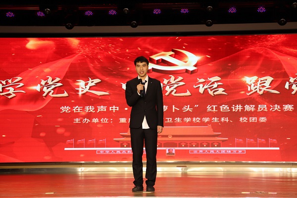 为弘扬革命烈士无私奉献、不畏牺牲的爱国精神,引导学校学生青年传承红色基因,树立崇尚英雄、继承遗志、不断奋进的良好风尚。4月8日,重庆市医药卫生学校“党在我声中·‘小萝卜头’红色讲解员”决赛在党群活动中心举行,学校党委书记、校长张展同志,纪委书记王玲同志,副校长冉国英同志,办公室主任王瑜,学生科科长邹建,沈治茂和傅琳堰老师担任评委,学校党支部书记、委员以及200余名师生代表出席本次活动,共评选出6个一等奖。